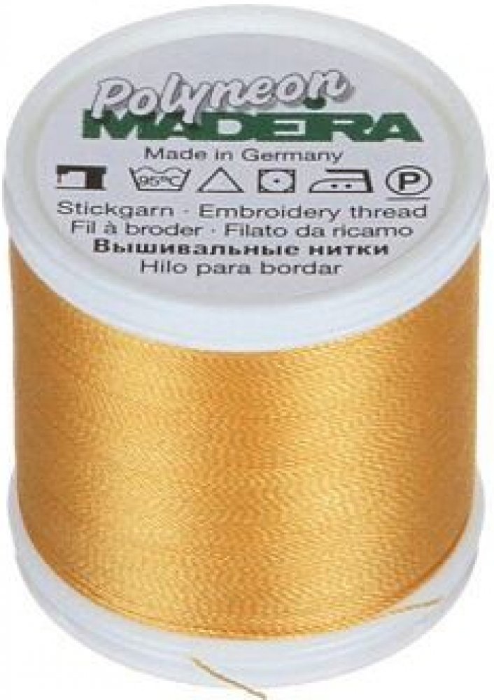 Vyšívací nitě PES Madeira Polyneon (400m) Nit Madeira Polyneon je polyesterová nit, která je ideální pro vytváření výšivek na sportovním oblečení, plavkách a často praných materiálech. Vyšívací nit Madeira Polyneon je odolná nit, vhodná pro strojové vyšívání, prošívání, dekorativní šití i šití aplikací. Nitě Polyneon jsou extrémně odolné. Polyneonové barvy zůstavají zářivé, výrazné a lesklé i po častém praní a vystavování slunečnímu světlu, chloru nebo otěru. Pro vyšívání nití Polyneon doporučujeme použití jehel 80/12. Složení nití Polyneon: 100% polyester Údržba: