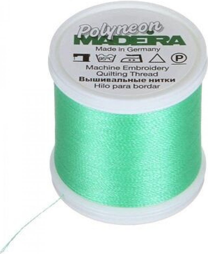 Vyšívací nitě PES Madeira Polyneon (400m) Nit Madeira Polyneon je polyesterová nit, která je ideální pro vytváření výšivek na sportovním oblečení, plavkách a často praných materiálech. Vyšívací nit Madeira Polyneon je odolná nit, vhodná pro strojové vyšívání, prošívání, dekorativní šití i šití aplikací. Nitě Polyneon jsou extrémně odolné. Polyneonové barvy zůstavají zářivé, výrazné a lesklé i po častém praní a vystavování slunečnímu světlu, chloru nebo otěru. Pro vyšívání nití Polyneon doporučujeme použití jehel 80/12. Složení nití Polyneon: 100% polyester Údržba:
