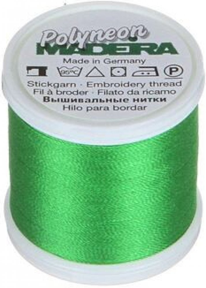 Vyšívací nitě PES Madeira Polyneon (400m) Nit Madeira Polyneon je polyesterová nit, která je ideální pro vytváření výšivek na sportovním oblečení, plavkách a často praných materiálech. Vyšívací nit Madeira Polyneon je odolná nit, vhodná pro strojové vyšívání, prošívání, dekorativní šití i šití aplikací. Nitě Polyneon jsou extrémně odolné. Polyneonové barvy zůstavají zářivé, výrazné a lesklé i po častém praní a vystavování slunečnímu světlu, chloru nebo otěru. Pro vyšívání nití Polyneon doporučujeme použití jehel 80/12. Složení nití Polyneon: 100% polyester Údržba: