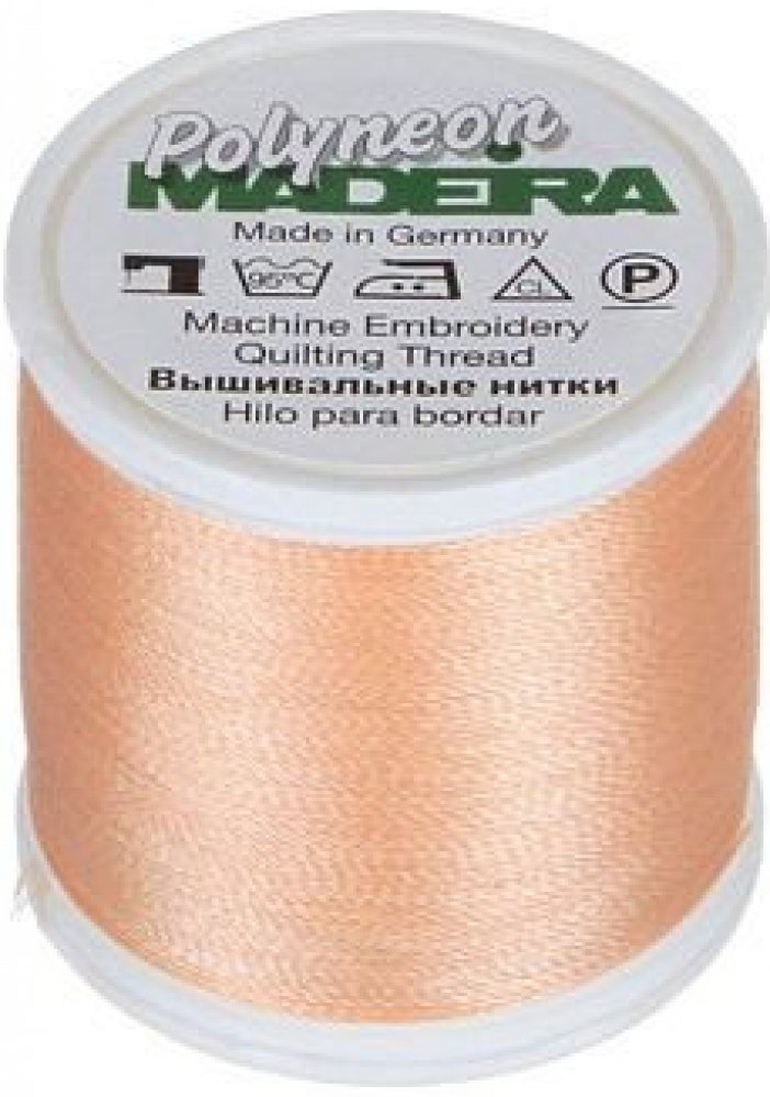 Vyšívací nitě PES Madeira Polyneon (400m) Nit Madeira Polyneon je polyesterová nit, která je ideální pro vytváření výšivek na sportovním oblečení, plavkách a často praných materiálech. Vyšívací nit Madeira Polyneon je odolná nit, vhodná pro strojové vyšívání, prošívání, dekorativní šití i šití aplikací. Nitě Polyneon jsou extrémně odolné. Polyneonové barvy zůstavají zářivé, výrazné a lesklé i po častém praní a vystavování slunečnímu světlu, chloru nebo otěru. Pro vyšívání nití Polyneon doporučujeme použití jehel 80/12. Složení nití Polyneon: 100% polyester Údržba: