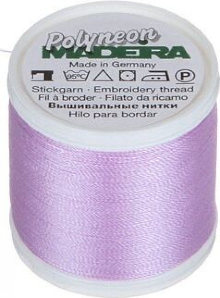 Vyšívací nitě PES Madeira Polyneon (400m) Nit Madeira Polyneon je polyesterová nit, která je ideální pro vytváření výšivek na sportovním oblečení, plavkách a často praných materiálech. Vyšívací nit Madeira Polyneon je odolná nit, vhodná pro strojové vyšívání, prošívání, dekorativní šití i šití aplikací. Nitě Polyneon jsou extrémně odolné. Polyneonové barvy zůstavají zářivé, výrazné a lesklé i po častém praní a vystavování slunečnímu světlu, chloru nebo otěru. Pro vyšívání nití Polyneon doporučujeme použití jehel 80/12. Složení nití Polyneon: 100% polyester Údržba: