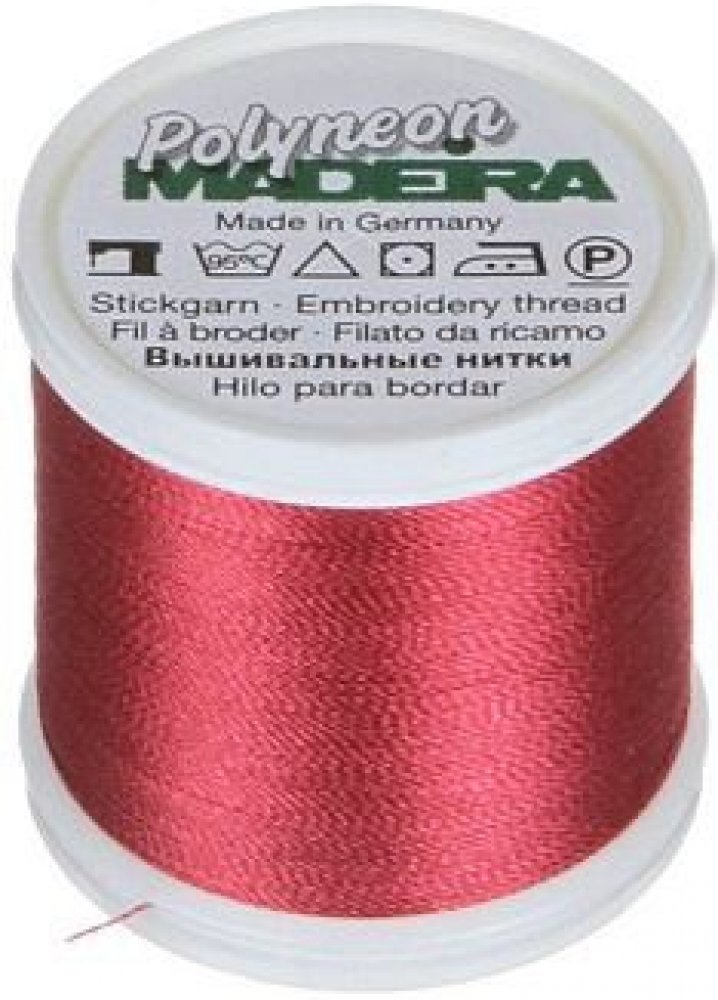 Vyšívací nitě PES Madeira Polyneon (400m) Nit Madeira Polyneon je polyesterová nit, která je ideální pro vytváření výšivek na sportovním oblečení, plavkách a často praných materiálech. Vyšívací nit Madeira Polyneon je odolná nit, vhodná pro strojové vyšívání, prošívání, dekorativní šití i šití aplikací. Nitě Polyneon jsou extrémně odolné. Polyneonové barvy zůstavají zářivé, výrazné a lesklé i po častém praní a vystavování slunečnímu světlu, chloru nebo otěru. Pro vyšívání nití Polyneon doporučujeme použití jehel 80/12. Složení nití Polyneon: 100% polyester Údržba: