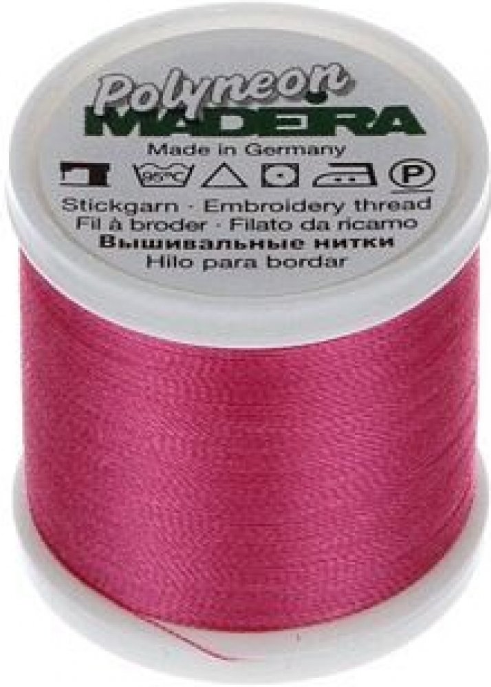 Vyšívací nitě PES Madeira Polyneon (400m) Nit Madeira Polyneon je polyesterová nit, která je ideální pro vytváření výšivek na sportovním oblečení, plavkách a často praných materiálech. Vyšívací nit Madeira Polyneon je odolná nit, vhodná pro strojové vyšívání, prošívání, dekorativní šití i šití aplikací. Nitě Polyneon jsou extrémně odolné. Polyneonové barvy zůstavají zářivé, výrazné a lesklé i po častém praní a vystavování slunečnímu světlu, chloru nebo otěru. Pro vyšívání nití Polyneon doporučujeme použití jehel 80/12. Složení nití Polyneon: 100% polyester Údržba: