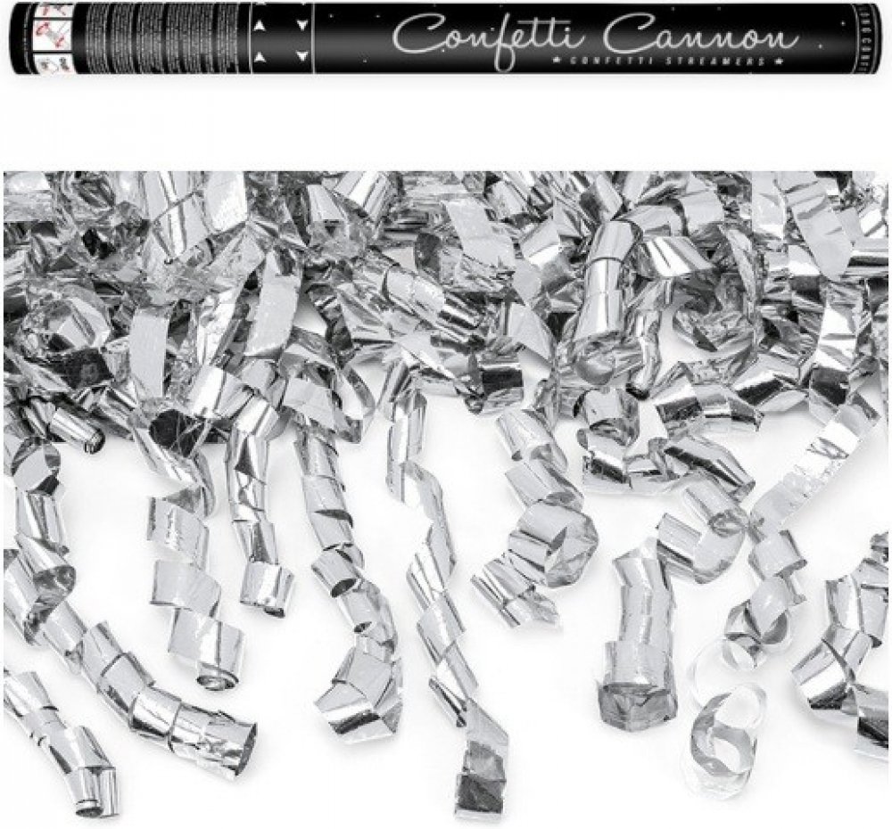 Vystřelovací konfety Party stříbrné serpentýny 60 cm