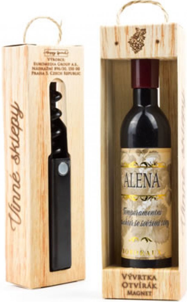 Vývrtka ve tvaru vinné lahve s originálním potiskem viněty je vhodným dárkem pro všechny milovníky vína. Užijte si svoji chvilku v dobré společnosti! Vývrtka s magnetem pro uchycení na lednici je balena v dárkové krabičce. Rozměr 12,5 x 3,5 x 2,5 cm.