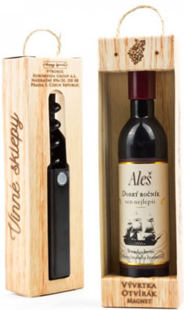 Vývrtka ve tvaru vinné lahve s originálním potiskem viněty je vhodným dárkem pro všechny milovníky vína. Užijte si svoji chvilku v dobré společnosti! Vývrtka s magnetem pro uchycení na lednici je balena v dárkové krabičce. Rozměr 12,5 x 3,5 x 2,5 cm.