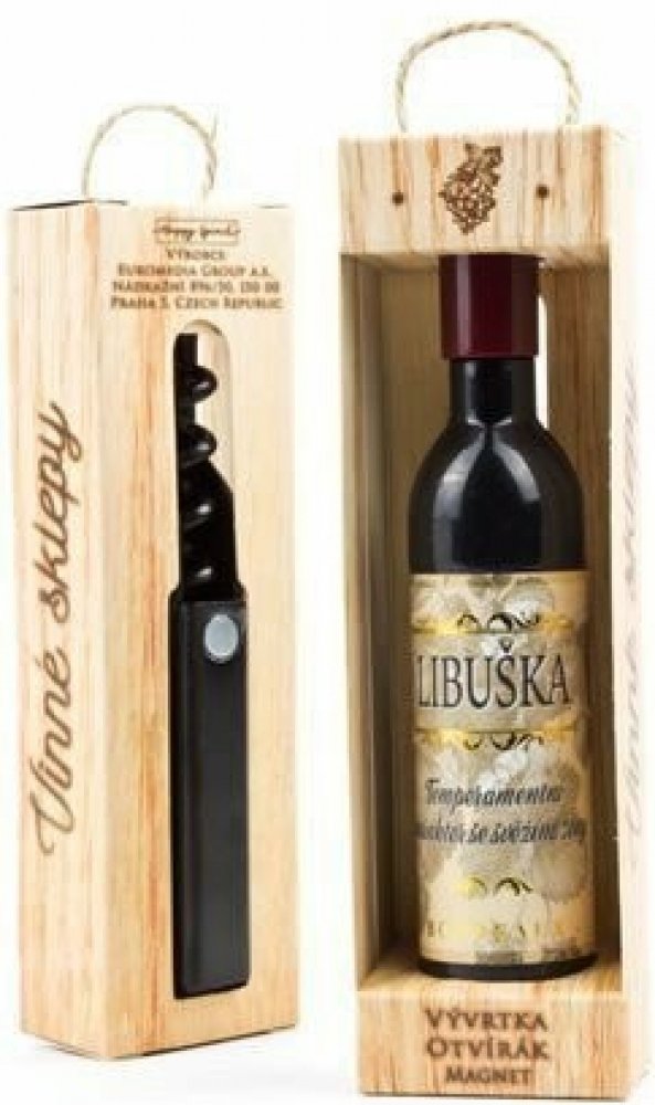 Vývrtka ve tvaru vinné lahve s originálním potiskem viněty je vhodným dárkem pro všechny milovníky vína.