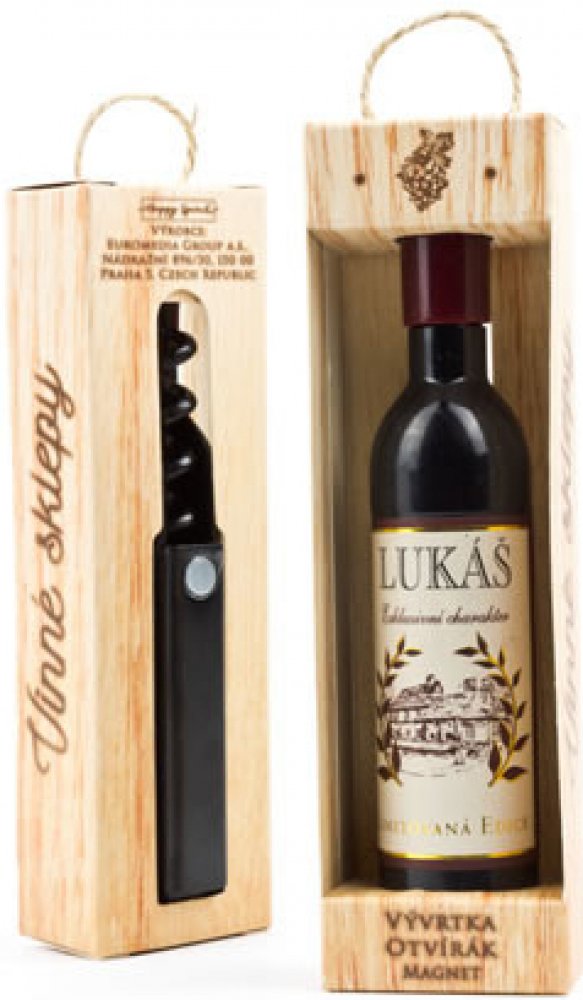 Vývrtka ve tvaru vinné lahve s originálním potiskem viněty je vhodným dárkem pro všechny milovníky vína. Užijte si svoji chvilku v dobré společnosti! Vývrtka s magnetem pro uchycení na lednici je balena v dárkové krabičce. Rozměr 12,5 x 3,5 x 2,5 cm.