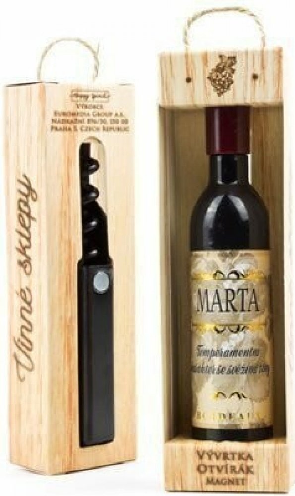 Vývrtka ve tvaru vinné lahve s originálním potiskem viněty je vhodným dárkem pro všechny milovníky vína.