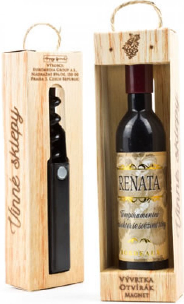 Vývrtka ve tvaru vinné lahve s originálním potiskem viněty je vhodným dárkem pro všechny milovníky vína. Užijte si svoji chvilku v dobré společnosti! Vývrtka s magnetem pro uchycení na lednici je balena v dárkové krabičce. Rozměr 12,5 x 3,5 x 2,5 cm.