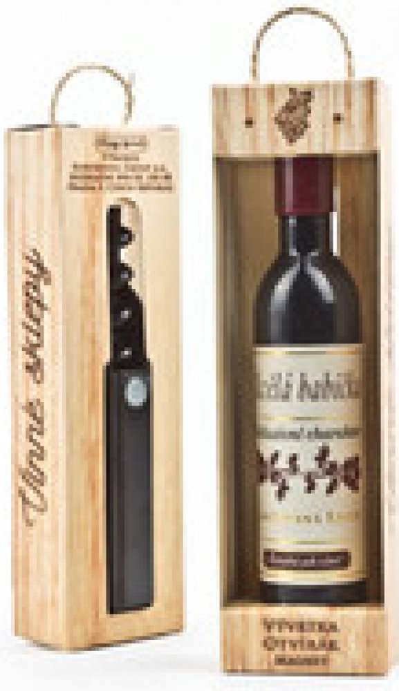 Vývrtka ve tvaru vinné lahve s originálním potiskem viněty je vhodným dárkem pro všechny milovníky vína.