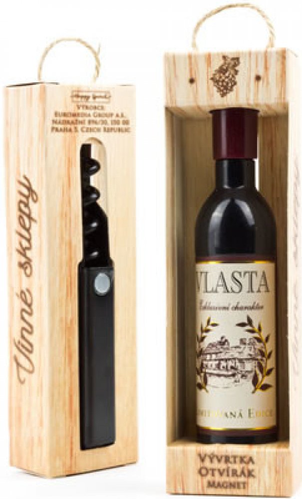 Vývrtka ve tvaru vinné lahve s originálním potiskem viněty je vhodným dárkem pro všechny milovníky vína. Užijte si svoji chvilku v dobré společnosti! Vývrtka s magnetem pro uchycení na lednici je balena v dárkové krabičce. Rozměr 12,5 x 3,5 x 2,5 cm.
