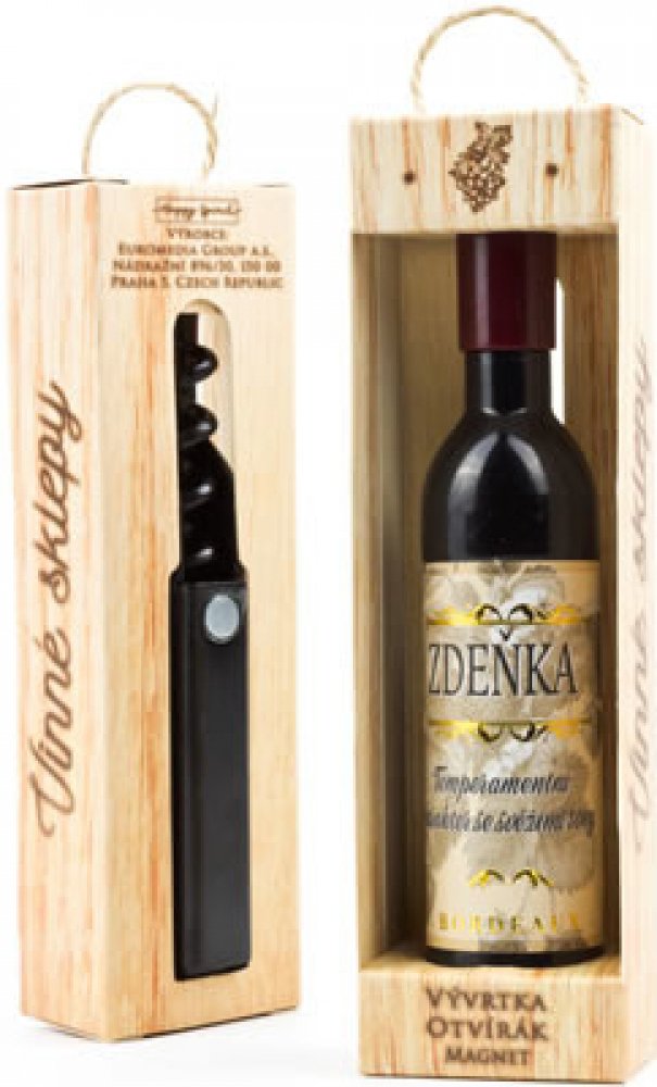 Vývrtka ve tvaru vinné lahve s originálním potiskem viněty je vhodným dárkem pro všechny milovníky vína. Užijte si svoji chvilku v dobré společnosti! Vývrtka s magnetem pro uchycení na lednici je balena v dárkové krabičce. Rozměr 12,5 x 3,5 x 2,5 cm.