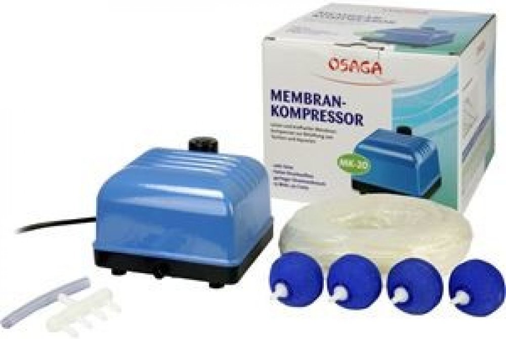 Výkonný, energeticky úsporný kompresor disponuje hliníkovým pouzdrem a je odolný proti stříkající vodě. Instalace je tedy možná ve venkovním prostředí. Kompresor MK-20 zajišťuje vysoký tlak a tím i flexibilní hloubku ponoru vzduchovacích kamenů (Max. 2 metry - 0,020 MPa *).