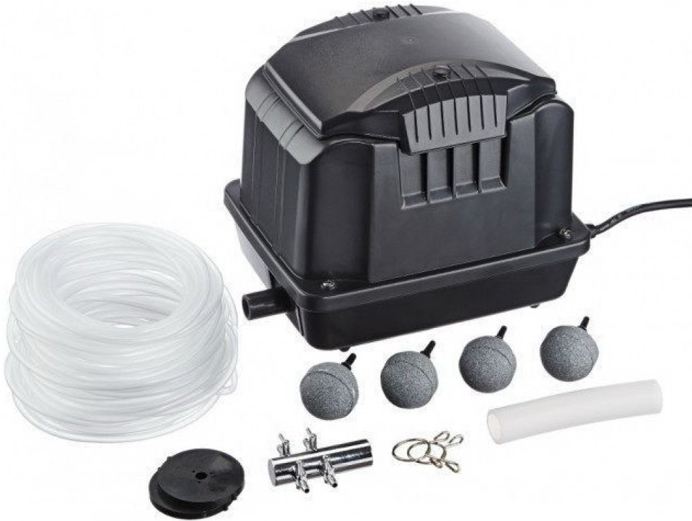 Toto provzdušňovací čerpadlo je ideální pro zajištění dostatečného množství kyslíku v jezírkách. Je určeno pro venkovní použití a díky své ochranné třídě IP 44 je odolné vůči vlivům prostředí.