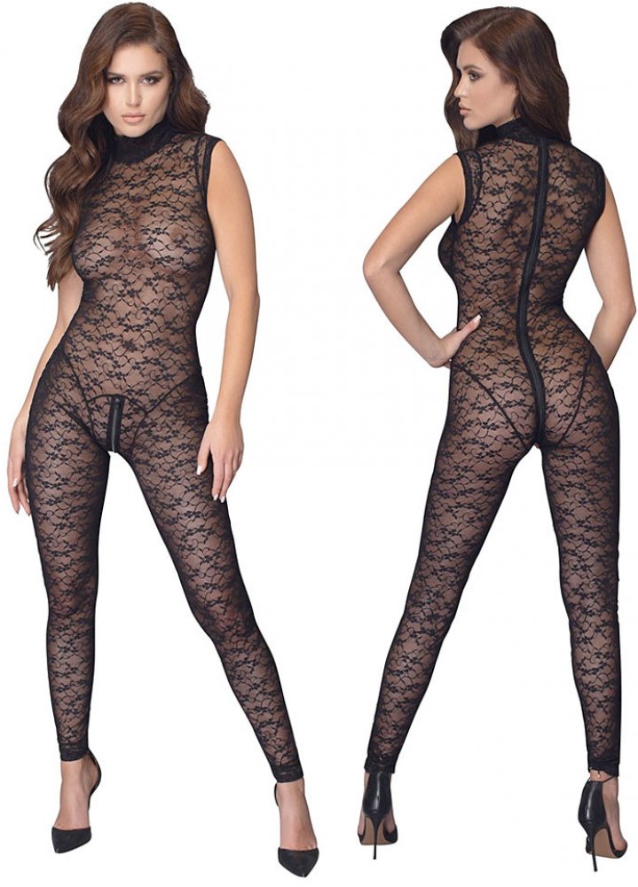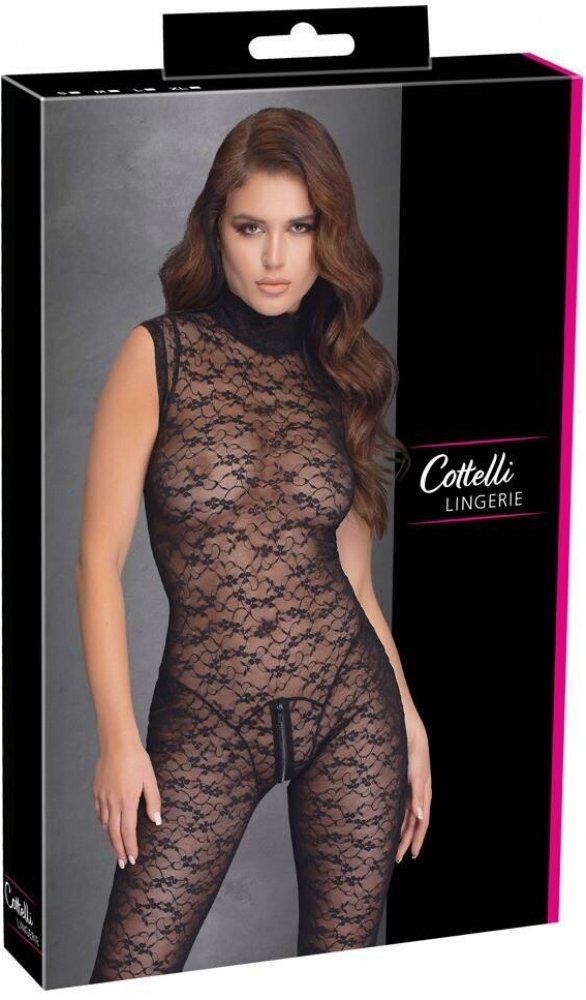 Provokatívna priesvitnosť celého tela!Kombinéza bez rukávov značky Cottelli LINGERIE je celá z elastickej, mäkkej čipky, ktorá prilieha ako druhá koža. Vrcholom je praktický dvojcestný zips, ktorý vedie od mons veneris cez rozkrok a potom cez chrbát až ku krku!90 % polyamid, 10 % spandex.