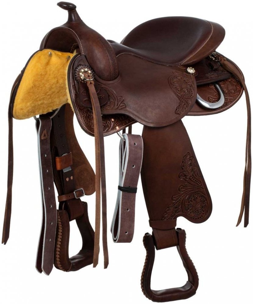 Westernové sedlo Freemax Cow leather typ Short je vyrobeno z ručně zdobené kvalitní hovězí kůže. Tento typ disponuje zkrácenou zadní "sukní", tudíž je vhodné pro krátké koně.