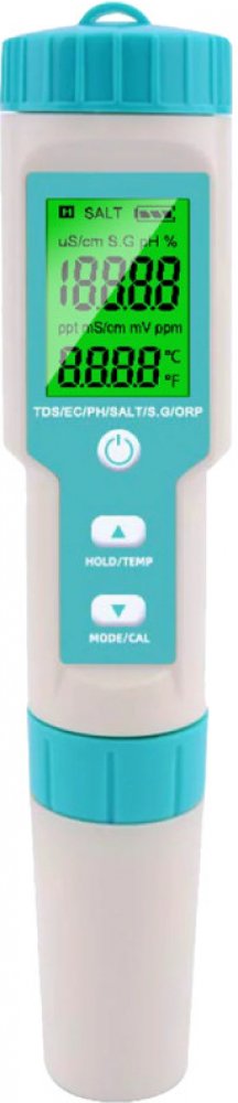 Digitální tester kvality vody C-600 – 7 v 1 pro bazény, studny i akváriaPraktický a přesný tester vody C-600 vám pomůže udržet ideální podmínky v bazénu, vířivce, akváriu i při kontrole pitné vody ze studny. Měří sedm klíčových parametrů včetně pH, TDS, vodivosti, salinity, ORP, měrné hmotnosti a teploty. Díky velkému displeji, jednoduchému ovládání a bez nutnosti použití testovacích proužků je id...