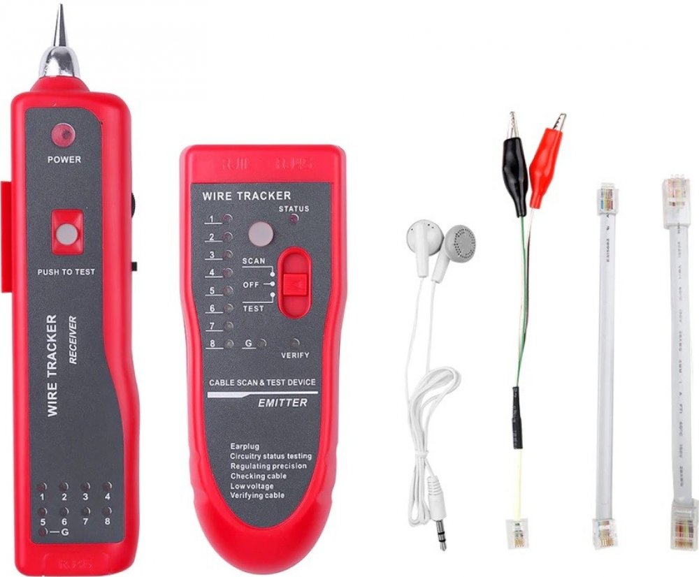 Multifunkční tester síťových kabelů RJ45, RJ11, WS828, hlavní a vyhledávací sonda, test zapojení UTP, diagnostika chyby v zapojení.