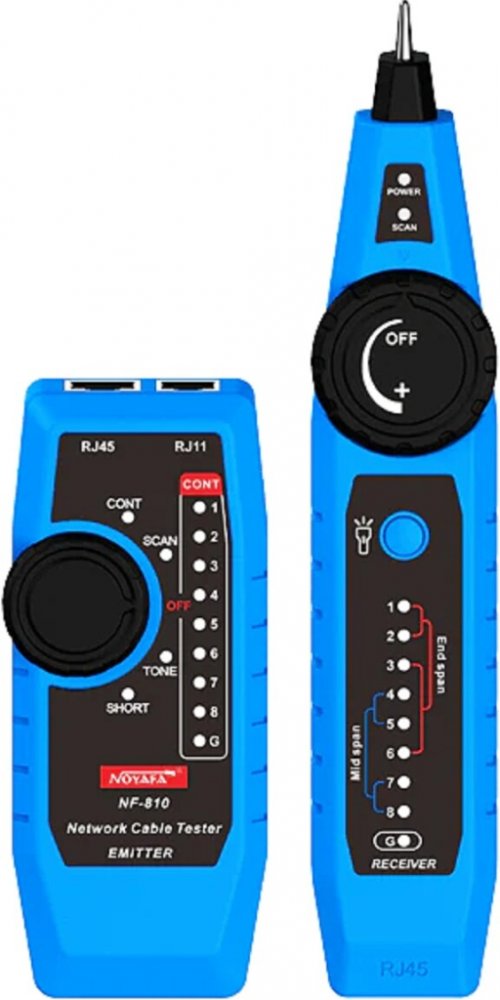 Tester a vyhledávač kabelů W-Star WSNF-810 je multifunkční nástroj určený pro rychlou diagnostiku datových i telefonních vedení. Umožňuje sledování kabelů (tracing), kontrolu zapojení, detekci PoE, testování telefonních linek a práci v hlučném prostředí díky připojitelným sluchátkům. Díky ochraně proti napětí do 60 V je vhodný i pro prostředí, kde hrozí přítomnost vedení pod napětím. Přehledná LED signalizace, nastavitelná citlivost a pracovního dosah až 1 km zajišťují efektivní použití při montáži i údržbě rozvodů. Klíčové vlastnostiVyhledávání kabelů: RJ11 / RJ45 / elektronické vodiče Kontrola zapojení (wiremap): přerušení, zkrat, křížení, STP kabely Detekce PoE a identifikace napájených pinů Ochrana proti napětí až do 60 V Testování telefonních linek: polarita, stav (klid, vyzvánění, hovor) Pracovní dosah sledování signálu až 1 km Nastavitelná citlivost přijímače LED osvětlení pro práci v tmavých místech Možnost použití sluchátek v hlučném prostředíOriginální kód výrobce: NOYAFA NF-810. Produkt je prodáván pod značkou W-Star.Certifikace: RoHS, CE, FCC W-Star WSNF-810 se hodí pro instalace strukturované kabeláže, údržbu rozvodů, hledání skrytých nebo přerušených vedení a kontrolu správného zapojení síťových i telefonních kabelů. Umožňuje rychlou identifikaci kabelů v rozvaděčích, patch panely, stupačkách i v rozsáhlejší kabeláži díky dlouhému dosahu sledování signálu. Možnosti použitíPřístroj je vhodný pro sledování vedení v datových sítích, vyhledání konkrétního kabelu ve svazcích, orientaci v telefonních linkách nebo kontrolu správného zapojení síťových přípojek. Praktické LED světlo usnadní práci v tmavších místech a sluchátkový výstup zlepšuje slyšitelnost signálu v hlučném prostředí. Díky ochraně proti napětí do 60 V jej lze použít i tam, kde může být vedení pod napětím. Technické parametryModel: W-Star WSNF-810 Napájení: 1x 9V baterie (není součásti dodávky) Podporované kabely: CAT5, CAT6, telefonní kabel,UTP/ STP Testovací rozhraní: RJ11, RJ45 Maximální pracovní napětí: 60 V Režimy testů: přerušení, zkrat, křížení (LAN kabely včetně STP) PoE test: ano, identifikace napájených pinů Test telefonních linek: ano (polarita, stav) Sledování kabelů (tracing): ano Dosah signálu: až 1 km Formát signálu: dvoutónový pulz Regulace citlivosti: ano LED osvětlení: ano Sluchátkový výstup: ano Rozměry vysílač: 201 x 45 x 27 mm Rozměry přijímač: 125 x 28 x 45 mm Doporučené použití: sledování kabelů, rychlá kontrola zapojení, diagnostika telefonních linek a testování PoE při instalaci i servisu.Napájení je řešeno 9V baterií, která není součástí balení.Obrázky mohou být ilustrativní.Originální označení: NF-810