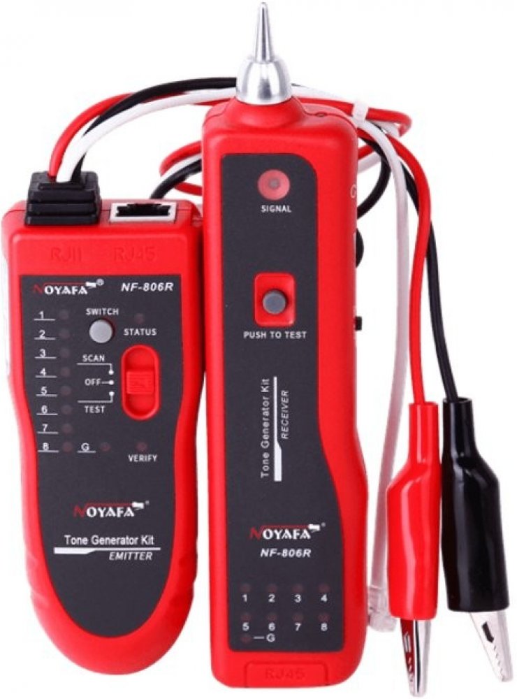 Ethernet tester Noyafa NF-806 je ideální pro techniky, kteří potřebují rychle zjistit stav kabeláže v neznámé síti, provést wiremap nebo vyhledat konkrétní kabel ve svazku. Přístroj nabízí pokročilé funkce pro diagnostiku – odhalí překřížené vodiče, zkrat či přerušení. Tester je dodáván v praktickém pouzdře, kam uložíte hlavní a vzdálenou jednotku i kabely s krokosvorkami. Vyhledávací sonda je vybavena kovovým hrotem a LED přísvitem pro práci i v hůře osvětlených místech.Klíčové vlastnostiRychlá orientace v síťové kabeláži Test kabelů RJ45 – wiremap, zkrat, přerušení, překřížení Vyhledávání kabelů ve svazcích až do vzdálenosti 2 km Vyhledávací sonda s kovovým hrotem a LED světlem Podpora konektorů RJ45, RJ11 a krokosvorek Dodáváno v pevném pouzdře pro snadný transport Technické parametryVysílač NF-806Frekvence zvuku: 200 Hz Maximální testovací vzdálenost: do 2 km Max. pracovní proud: 10 mA Tón zvuku: 2 nastavitelné tóny Ovládání hlasitosti: ano Konektory: RJ45, krokosvorky s RJ11 Max. výstupní napětí signálu: 8 Vp-p LED indikace: vodiče 1–8, LED přísvit Přepěťová ochrana: DC 48 V Napájení: 1x 9 V baterie (není součástí) Rozměry: 15 x 3,7 x 2 cm Barva: červená Přijímač NF-806Frekvence: 200 kHz Max. pracovní proud: 30 mA Sluchátkový výstup: ano Napájení: 1x 9 V baterie (není součástí) Rozměry: 12,2 x 4,5 x 2,3 cm CertifikaceRoHS FCC Noyafa certifikát ISO 9001 Originální kód výrobce: NOYAFA NF-806R. Produkt je prodáván pod značkou W-Star. Technická specifikace může být změněna bez výslovného upozornění, obrázky mohou být ilustrativní.