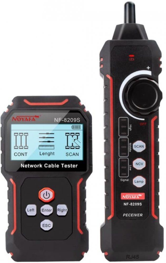 Kabelový tester W-star WSNF8209S testuje zapojení vodičů v datovém kabelu CAT5, CAT5e, CAT6, STP UTP a kontroluje 5 nejčastějších problémů se zapojením ethernet kabelu, včetně přerušených, zkrat...