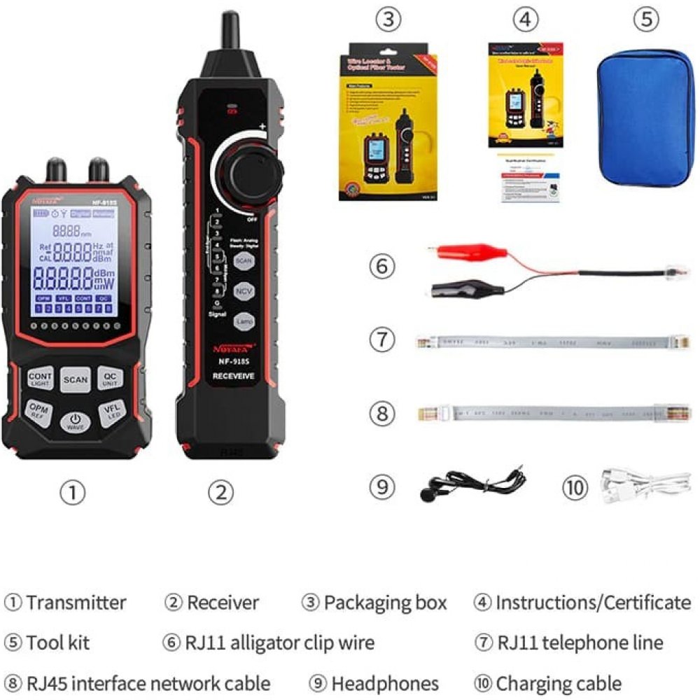 Univerzální síťový tester Noyafa NF918S s VFL a diagnostikou UTP kabelů.