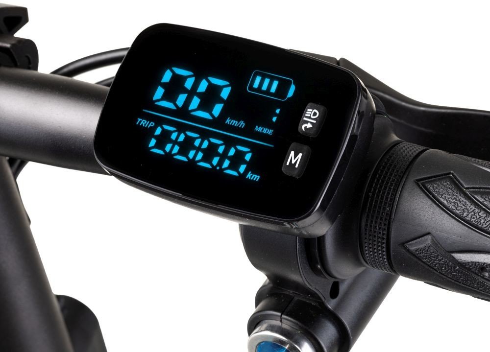 přední i zadní odpružení, plynová rukojeť, zamknutí na klíč, skládací mechanismus řídítek, podsvícený multifunkční displej (napájený centrální baterií), stojánek, blatníky, zvonek, příprava pro montáž zpětných zrcátek