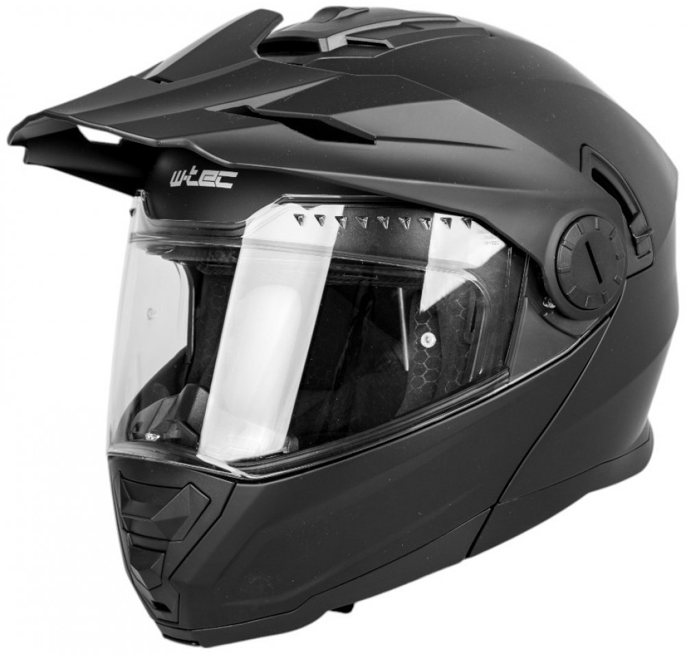 Výklopná přilba W-TEC Biscaia je univerzální 3v1 moto helma, kterou využijete jak pro jízdu na silničních motocyklech, tak si jí můžete vzít i na výlety a dobrodružství v terénu. Pro tento účel je vybavena snadno odnímatelným kšiltem.