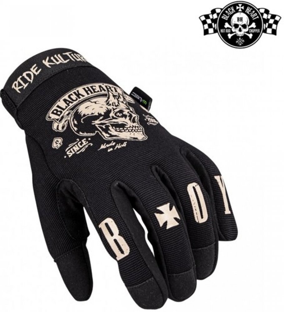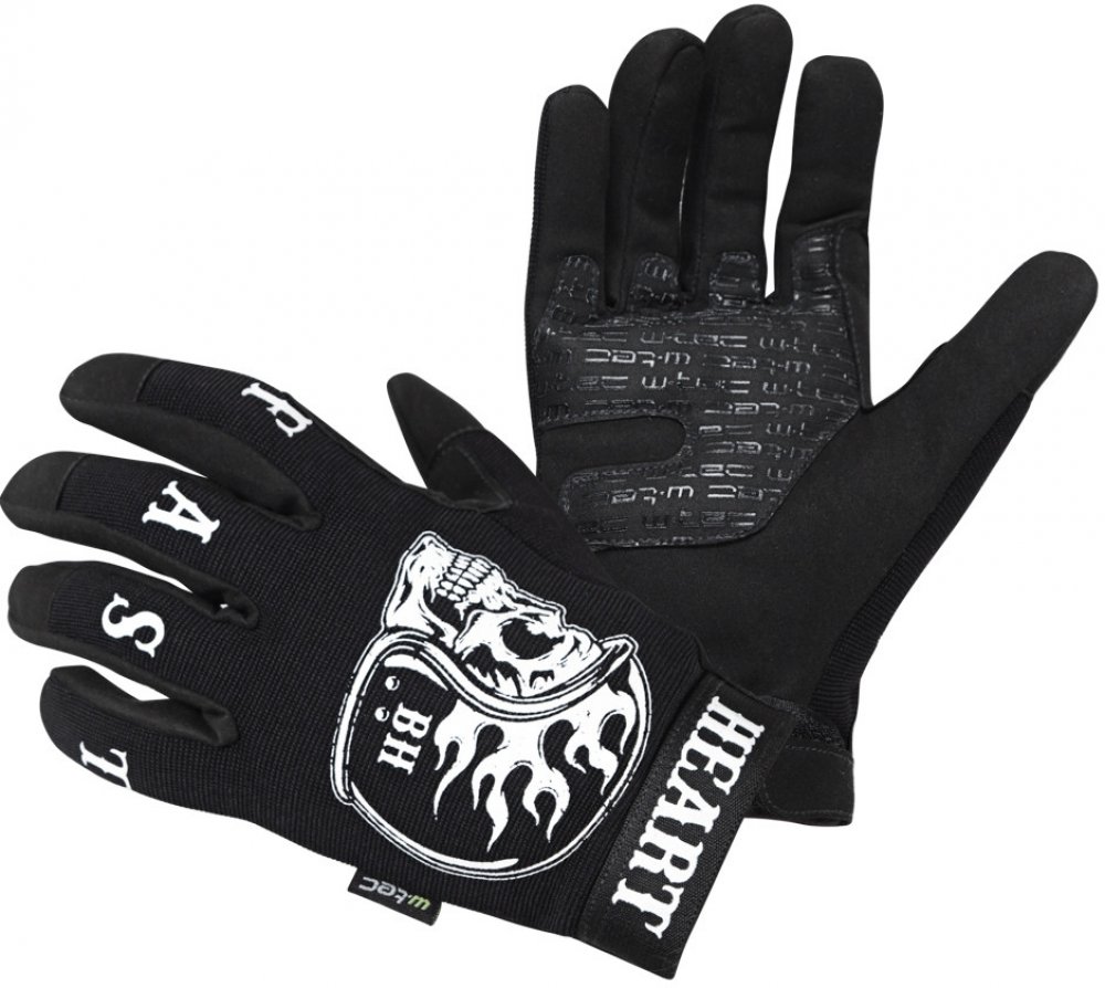 Moto rukavice W-TEC Rioter představují skvělý doplněk na chopper, ale i na čtyřkolky nebo horská kola. Na jejich originálním grafickém zpracování se značka W-TEC spojila s českým progresivním designérským brandem Black Heart. Motorkářský motiv tady udává styl a tvrdí muziku!