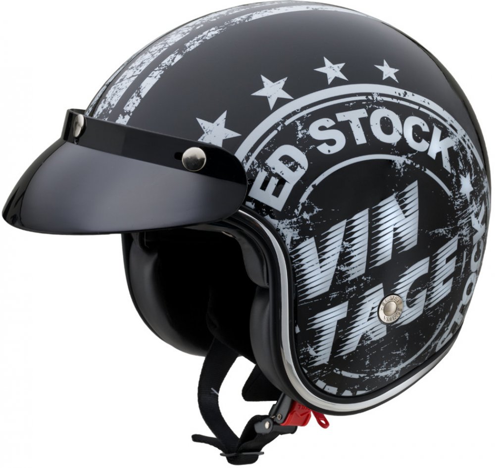 Při jízdě proti ostrému slunci oceníte vysouvací sluneční clonu a odnímatelný kšilt. Z hlediska praktičnosti potěší zadní poutko pro uchycení a zajištění motocyklových brýlí nebo snadné zapínání na rychloupínací přezku. Efektní vintage zpracování pak podtrhují výrazné chromové lemy. To vše dělá z přilby W-TEC Café Racer jasnou volbu na oldskoolové modely motorek.Technický popis: