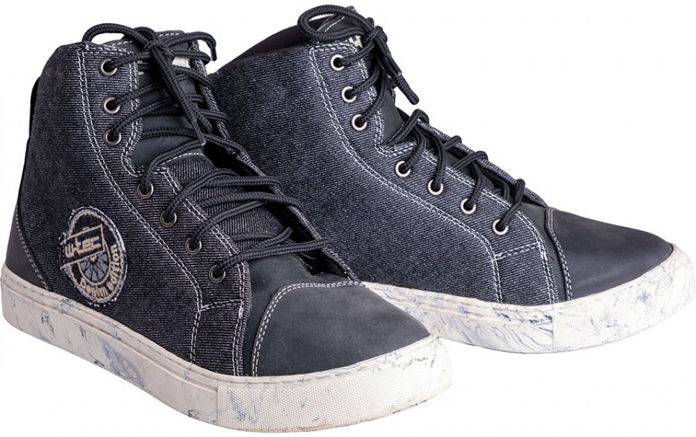 Moto boty W-TEC Denimo designem připomínají typické kotníkové tenisky, jsou ovšem plně připraveny pro použití na motocyklech a skútrech. Muziku tady ještě přitvrzuje jeansová textura, nášivky na bocích i obnošené zpracování, díky kterému obuv sedne i k různým retro a vintage modelům. Samozřejmostí pro použití na motorce pak je vyztužená oblast špičky a paty včetně části u řadičky nebo ochrana kotn...