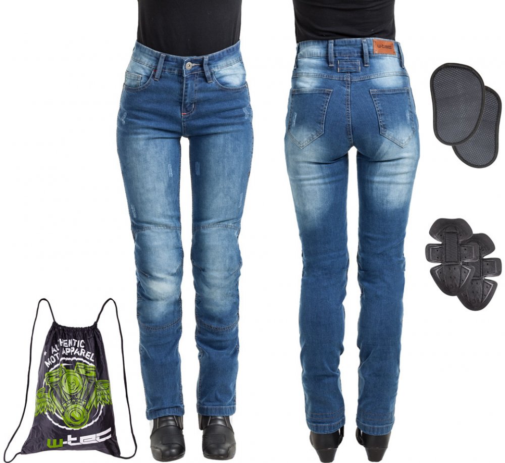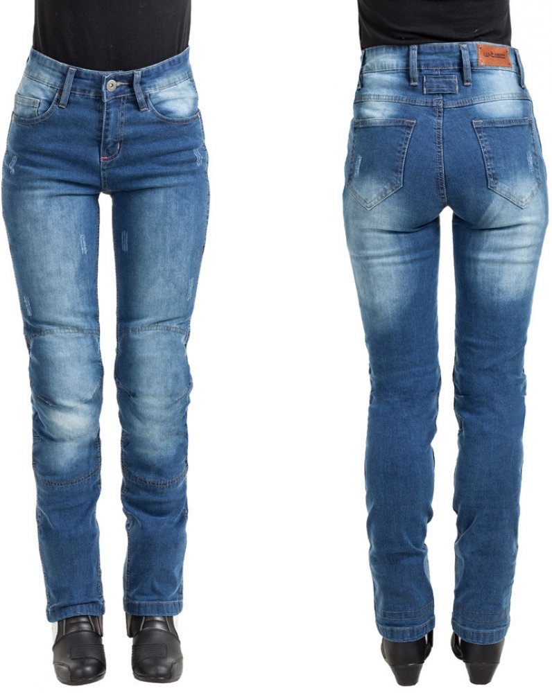Velké množství kapes je možno prakticky využít jako úložný prostor pro drobnosti. Design kalhot doplňují knoflíky, nýty, kovový zip, stylový "scratch" efekt a dvojité prošití. Dámské moto jeansy W-TEC Panimali jsou dobrou kombinací bezpečnosti, pohodlí a stylu. Díky jejich vlastnostem je lze nosit jak na jaře a na podzim, tak i během horkých letních dnů.