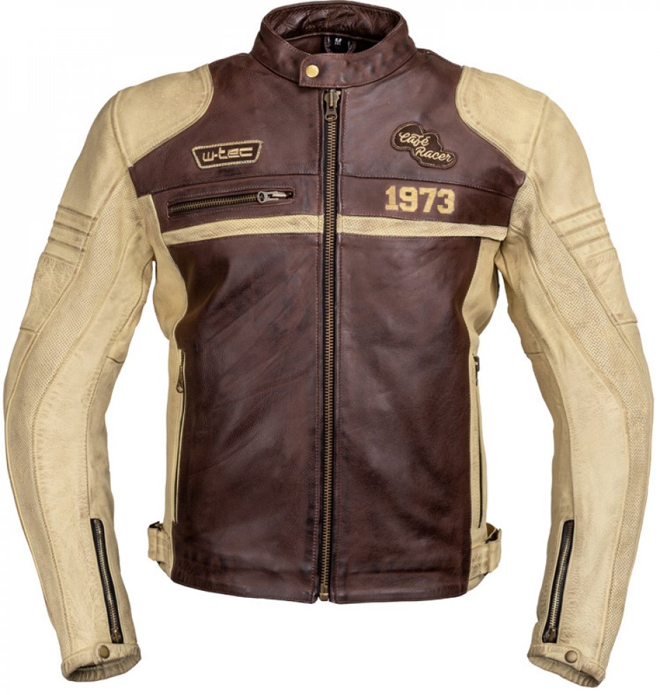 Pánská kožená moto bunda W-TEC Retro - černo-hnědo-béžová