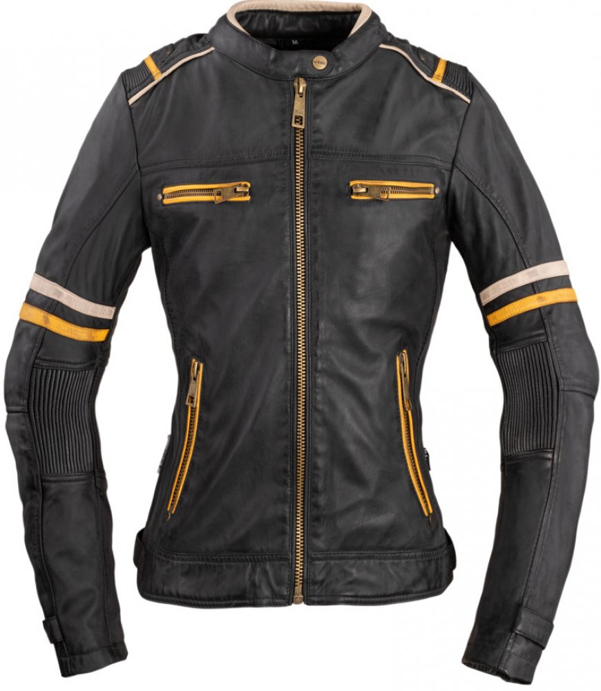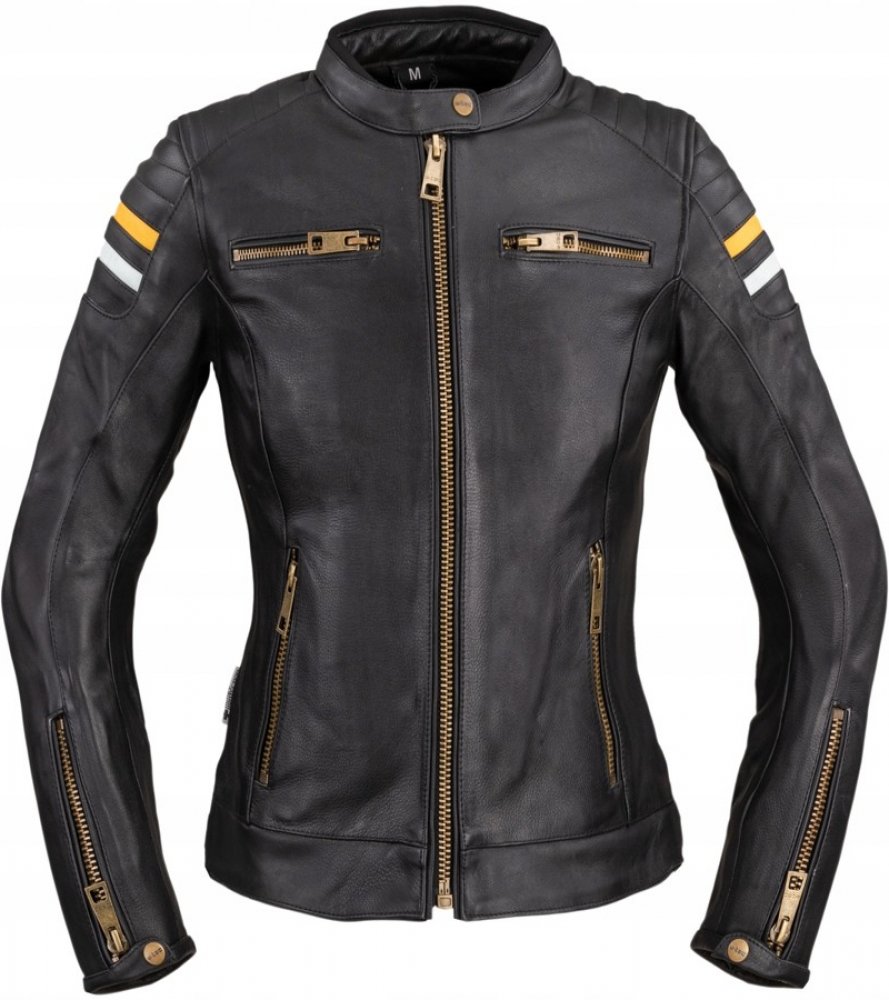 Vkusný styl na motorku, který je v neposlední řadě zvýrazněn decentními barevnými pruhy, to je kožená bunda W-TEC Traction Lady.