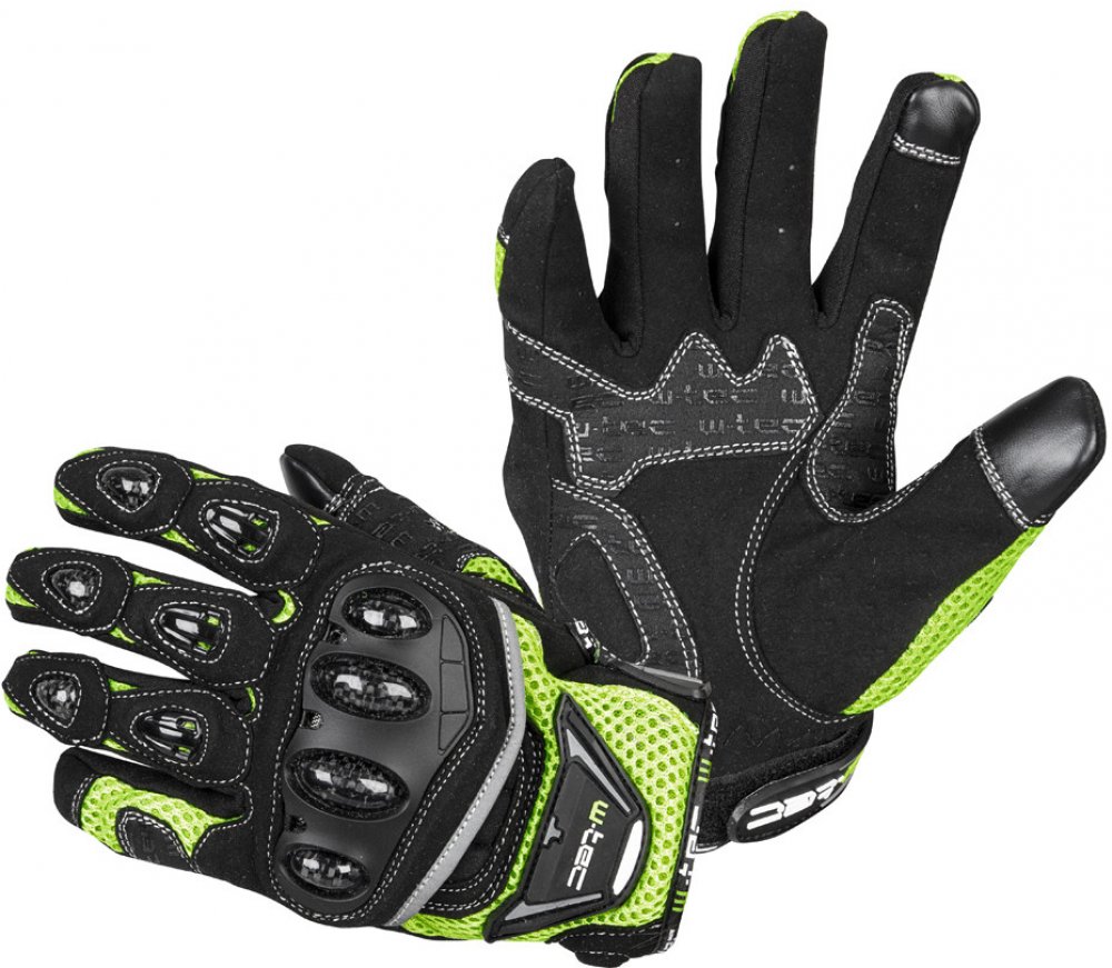 Zapínání rukavic je provedeno na stahovací popruh se suchým zipem v oblasti zápěstí. Praktickým doplňkem je možnost ovládání dotykových zařízení přímo v rukavicích, jelikož konečky ukazováčku a palce jsou vybaveny speciálním povrchem. Zařaďte na vyšší rychlostní stupeň a s moto rukavicemi W-TEC Upgear to rozjeďte naplno!Technický popis: