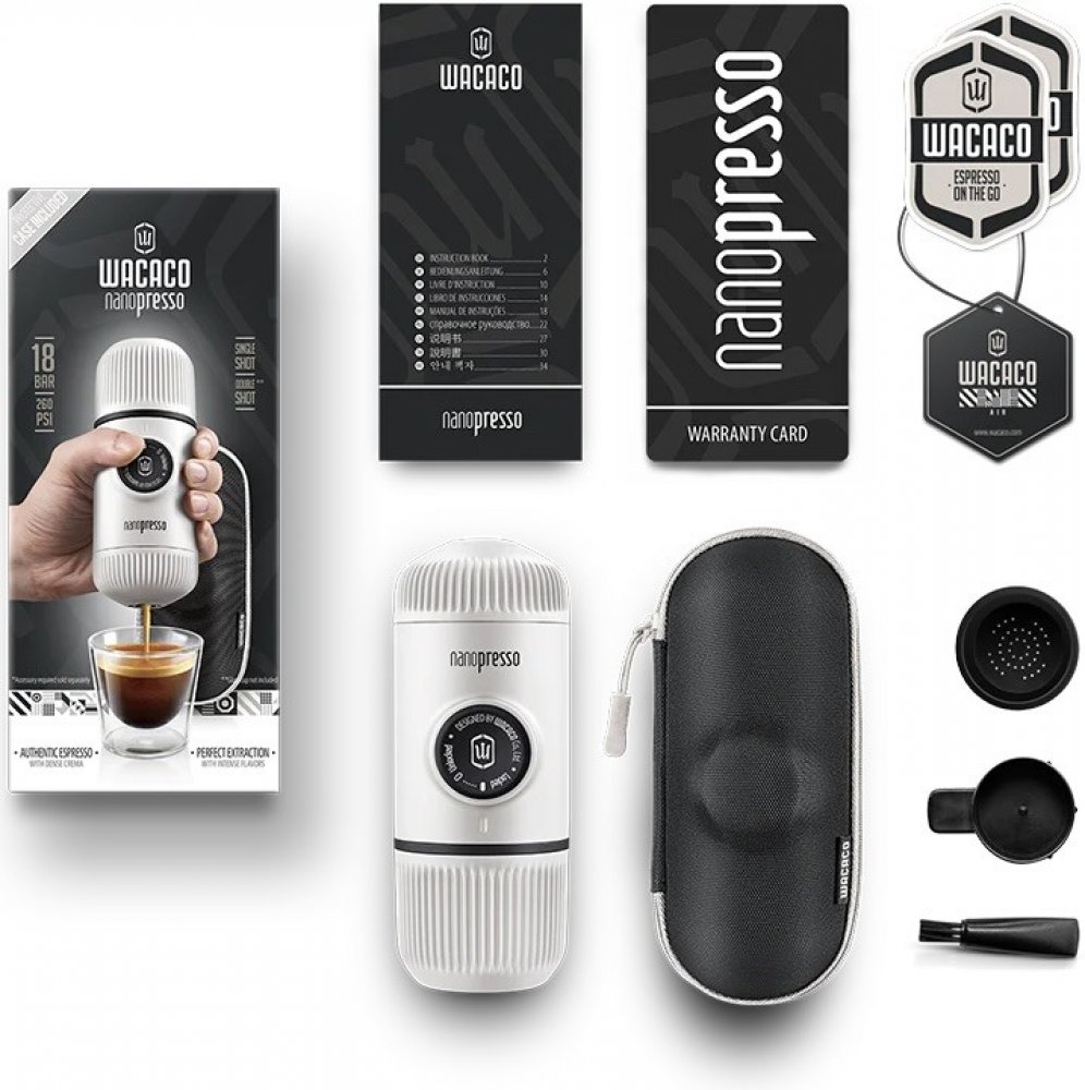 Kávovar Wacaco Nanopresso je outdoorový espresso kávovar. K přípravě Vám stačí káva, horká voda a trocha vlastní síly. Je postavený na nově patentovaném čerpacím systému, díky čemu je schopen dosáhnout s pomocí vašich rukou velmi vysoký tlak pro jedinečnou kvalitu extrakce kávy. Nanopresso pracuje nejlépe s jemně mletou kávou, která je pevně upěchována.