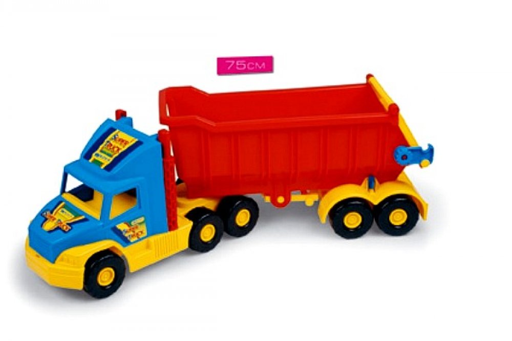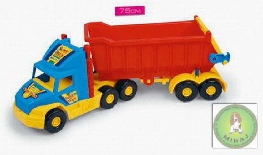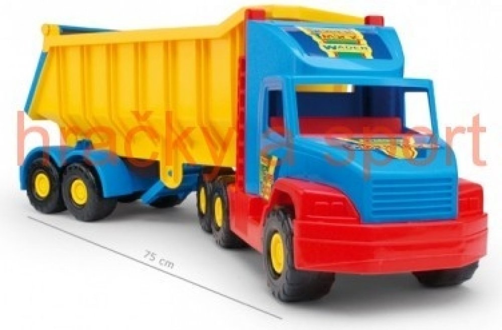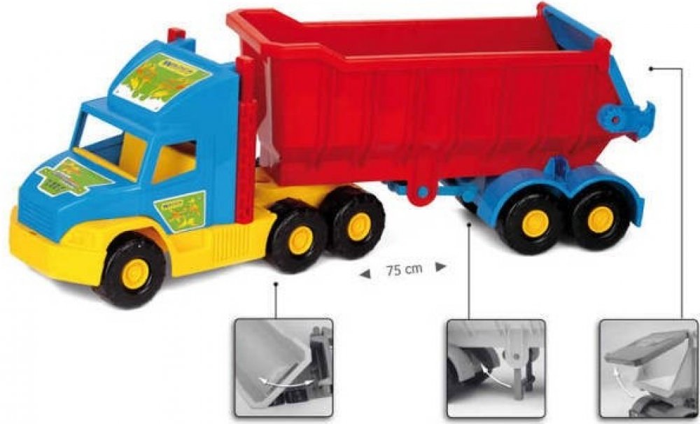 Kvalitní plastový nákladní tahač, má skvěle propracované tvary a odolnost, tak jako opravdový stavební sklápěč. Sklápěcí korba má bezpečnostní pojistku proti náhodnému sklopení. Nákladní auto je vyrobeno z vysoce odolného a kvalitního plastu. S tímto modelem si vaše děti užijí spoustu legrace a zvlášť potěší všechny fandy tohoto stavebního stroje.
