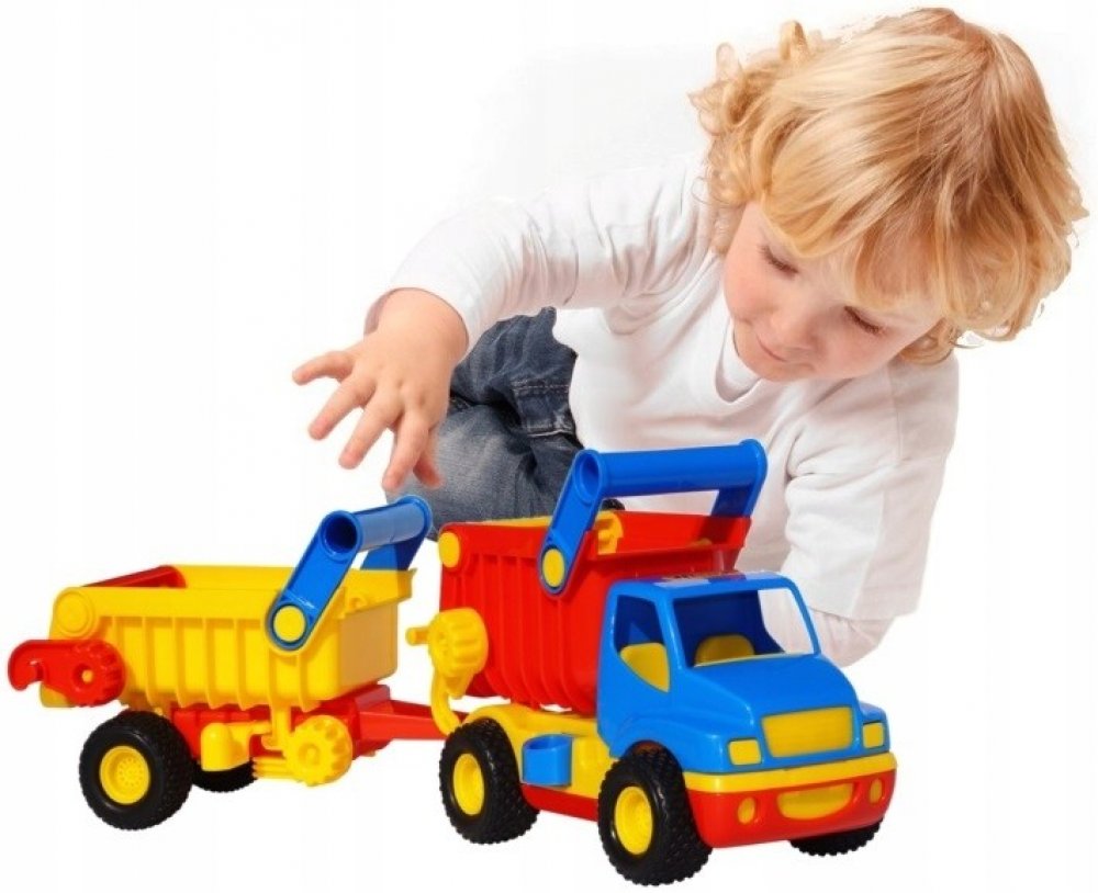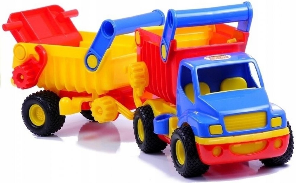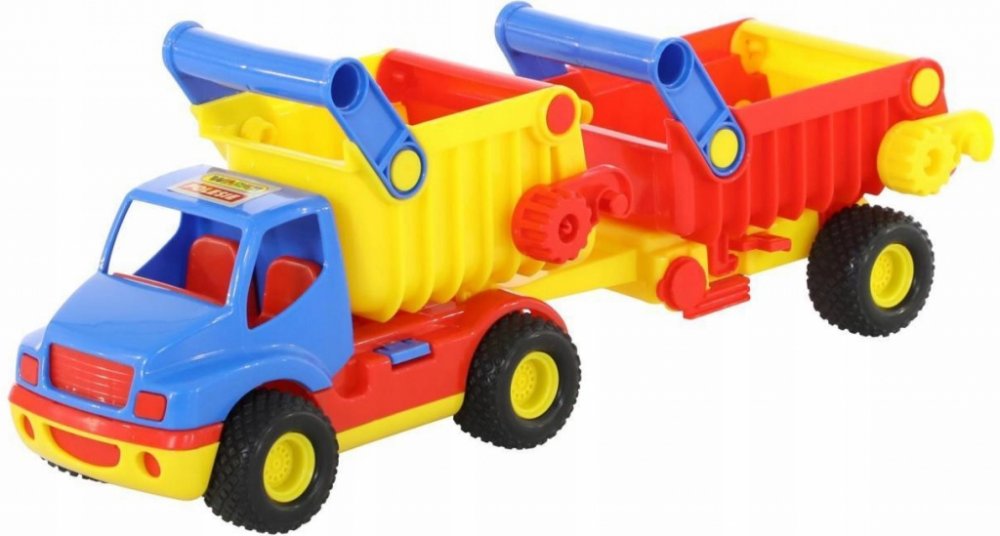 VítejtePředmětem prodeje je nováNákladní auto sklápěč+Přívěs sklápěčSada s gumovými pneumatikamiBarevný sklápěčBarevné vozidlo má zvedací sklápěčku s otevírací bočnicí Sklápěčka má navíc gumové pneumatikyA pohodlné madlo pro přenášení vozidlaCelková délka soupravy 50 cmSada je vyrobena z kvalitních, atestovaných materiálůMá živé barvy, které upoutají pozornost dítěteBarevný přívěs sklápěč v sadě...