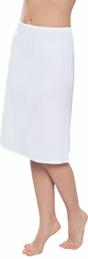 Dámská spodnička 10702 v klasickém střihu je vyrobena z kvalitní směsi 82 % polyamidu a 18 % elastanu, což zajišťuje perfektní pohodlí a snadnou údržbu. Díky gumičce všité v pase a použití elastanu je spodnička velmi pružná a přizpůsobí se křivkám těla. Nabízíme ji ve třech barvách: béžová, bílá a černá a v široké škále velikostí od S až po XXL. Spodnička sahá zhruba po kolena a poskytuje hladký vzhled pod oblečením.