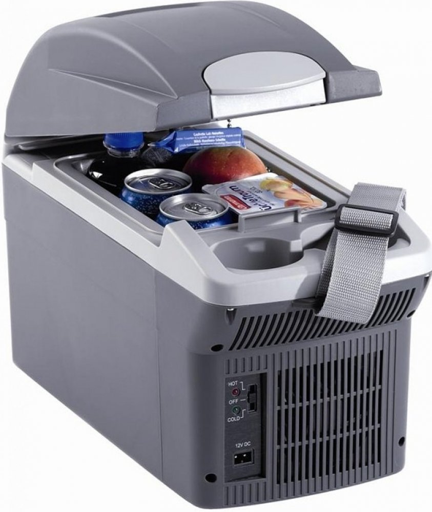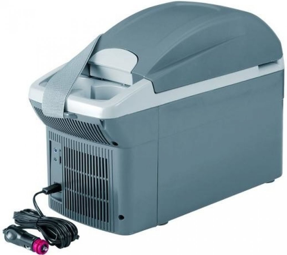 Termoelektrická autochladnička Bordbar TB-08 s napájením na 12V. Chladící účinek je přenášen na vnitřní kovovou vaničku. Chlazení 20°C pod okolní teplotu, při dosažení teploty cca +5°C chladnička vypíná. Přepnutím na ohřev dosáhnete teploty cca +65°C. Do boxu lze vložit 0,5 litrové láhve. Box je vybaven popruhem ke snadnému přenášení. Ve víku je schránka pro uložení napájecího kabelu.