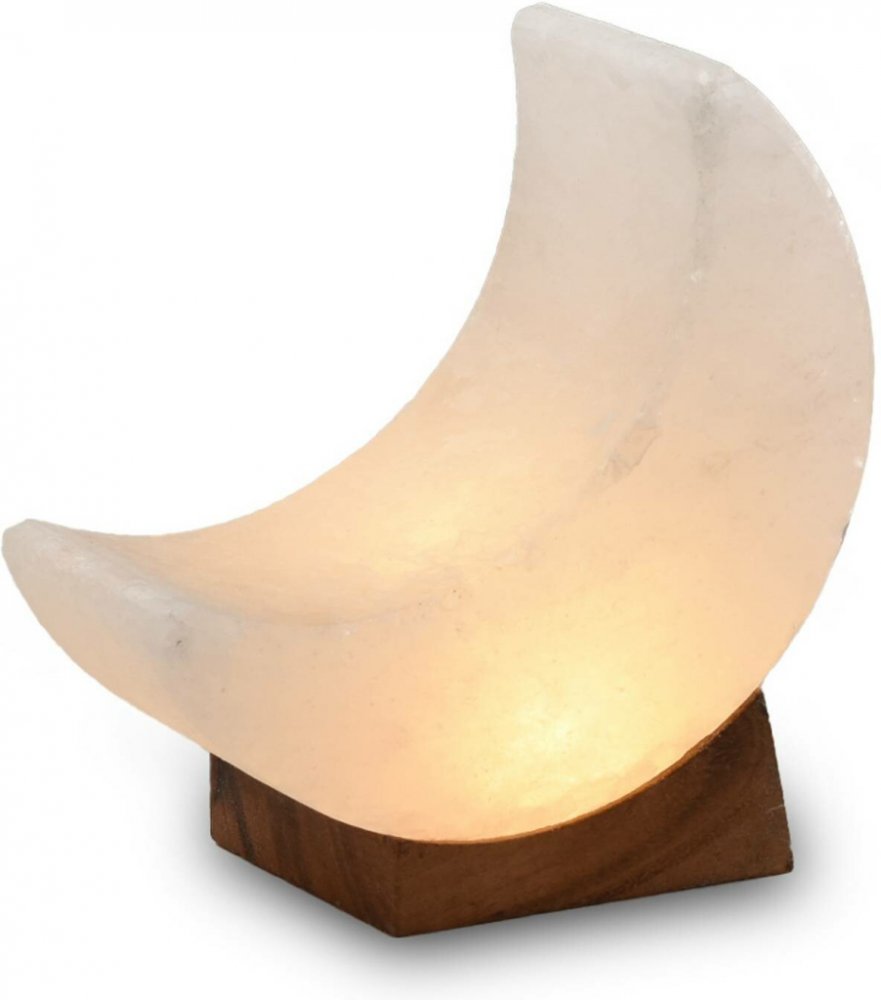LED solná krystalová lampa Měsíc v bílé barvě s dřevěným podstavcem a USB kabelem Bílý solný krystal ve tvaru měsíce leží na dřevěném podstavci a je osvětlen LED diodou uvnitř. Lampa je vybavena USB kabelem s vypínačem a lze ji připojit k počítači, powerbance nebo pomocí vhodného adaptéru také k elektrické zásuvce. - ručně vyrobeno ze solného krystalu, vhodné pouze pro vnitřní použití. - Vzhledem k přírodnímu charakteru solných krystalů je každý kámen jedinečný a může se mírně lišit od obrázků ve tvaru, výšce a barvě. - Včetně USB-LED elektrického zapojení - není vhodná pro osvětlení místnosti. - Krystalická sůl pochází z pohoří Salt Range v provincii Punjab, přibližně 200 km jižně od Himalájí