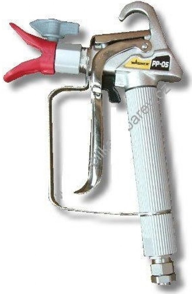 Pistole Wagner PP-05 Airless do stříkací pistole Wagner Project Pro 115, 117, 119 ad. (0418717) Celokovová, otočná, nerezová stříkací pistole PP-05 s rukojetí pro přístroje Project 115, Project Pro 117 a Project Pro 119 Obsahuje chránič trysky Tryska a těsnící element není součástí dodávky