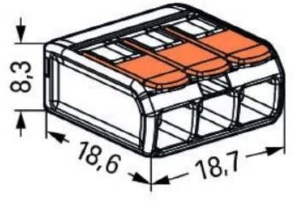 - Typ: Svorka pro tři vodiče (lanka), určená pro připojení až tří vodičů současně.