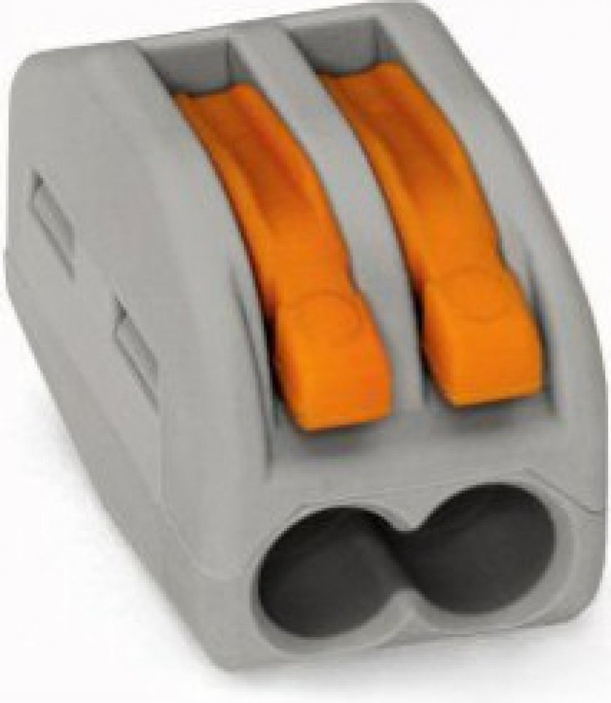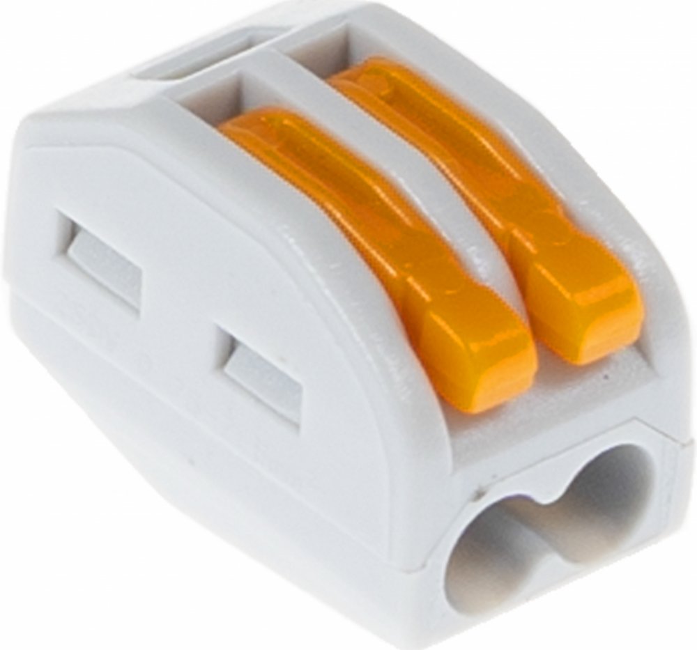 2-vodičové svorky s páčkou pro snadnou montáž a demontáž kabelů. Všechny 2 vstupy jsou ve spojce propojeny jako jeden spoj. (neslouží k propojení 2 nezávislých propojení) Technická specifikace: zatížení 250V/32A průměr kabelu 0,75 - 2,5 mm2