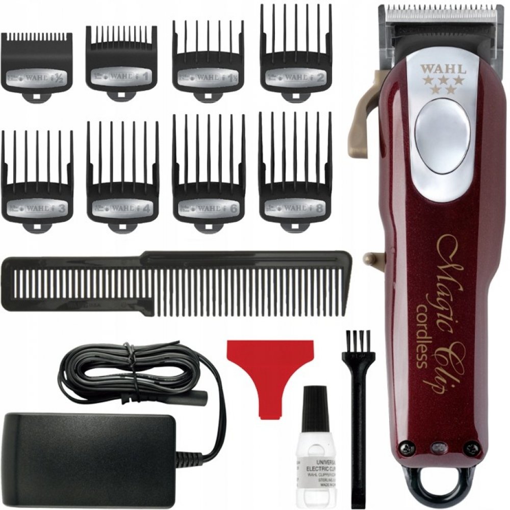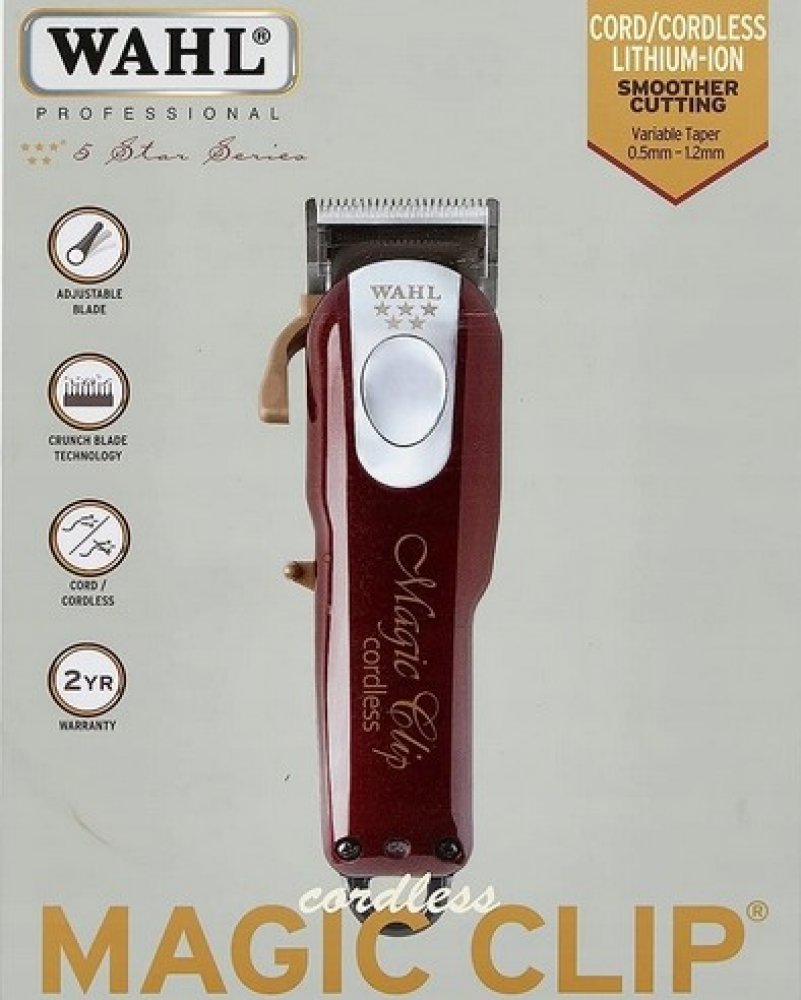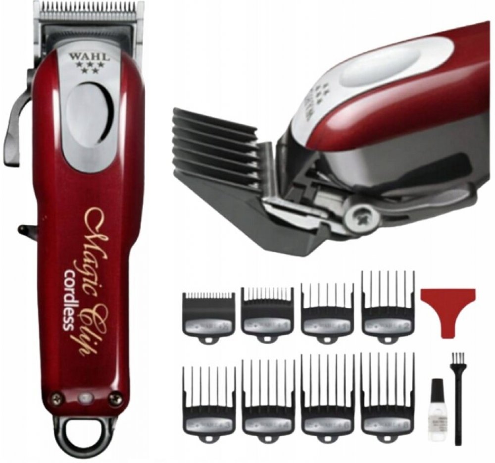 Profesionální akumulátorový strojek na vlasy Cordless Magic Clip 08148-016 má spolehlivý vibrační motor a kvalitní celokovovou, chromovanou stříhací hlavici o šířce 40 mm s nastavením výšky střihu od 0,8 do 2,5 mm. Balení obsahuje 8 přídavných hřebenů 1,5 mm, 3 mm, 4,5 mm, 6 mm, 10 mm, 13 mm, 19 mm, 25 mm, čistící kartáček, olej, síťový adaptér a ochranný kryt hlavice.