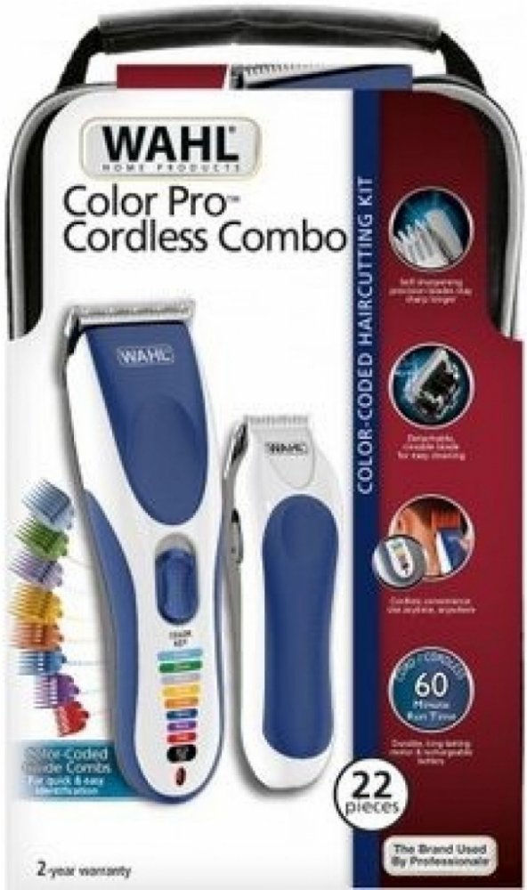 Populární akumulátorový zastřihovač vlasů Wahl Color Pro ve verzi Combo s mini detailním bateriovým zastřihovačem pro úpravu kontur zaujme modrobílým designem s ergonomickým tvarem těla strojku pro pohodlné používání. Bohatá 22dílná sada příslušenství obsahuje vše potřebné pro úpravu téměř jakéhokoliv účesu. Výhodou zastřihovače jsou barevně odlišené hřebenové nástavce pro snadnou identifikaci pož...