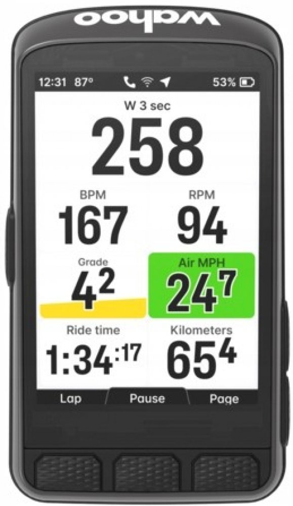 Nejpokročilejší a největší obrazovka od Wahoo. Počet barev je nyní 16 milionů a ke všemu je i dotyková. Jen vy se rozhodnete, jak budete komunikovat s hlavní jednotkou. Použijte hmatová tlačítka nebo přejeďte prstem, stáhněte a přibližujte si jednoduše mapu a ostatní údaje na 3,8" dotykové obrazovce.
