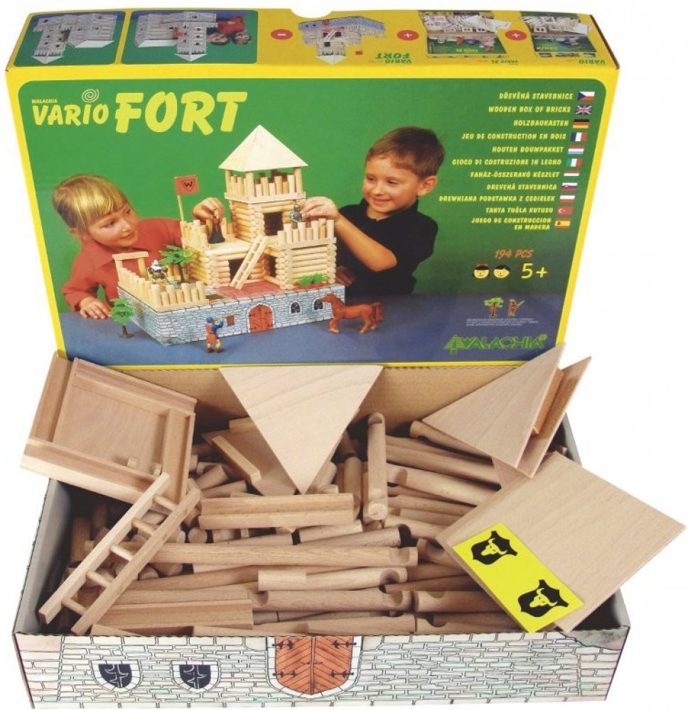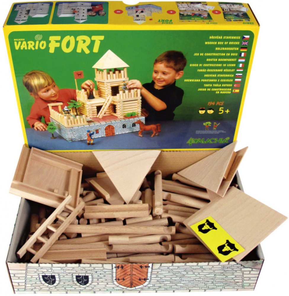 Děti od 5 let zažijí hodiny zábavy a pečlivé práce se stavebnicemi VARIO – 9 variant lze libovolně skládat a rozkládat na desítky modelů staveb. Ty se liší množstvím dílů, provedením střechy a balením. Všechny tyto modely jsou vzájemně kompatibilní a dokážou postavit desítky různých budov. Pro praktické skladování a odolnost jsou stavebnice VARIO uloženy v pevných kartonových krabicích, stavebnice v provedení VARIO KUFŘ jsou uloženy v praktických pouzdrech a VARIO BOX jsou ukryty v masivní krabici z bukového dřeva a překližky s kolečky.