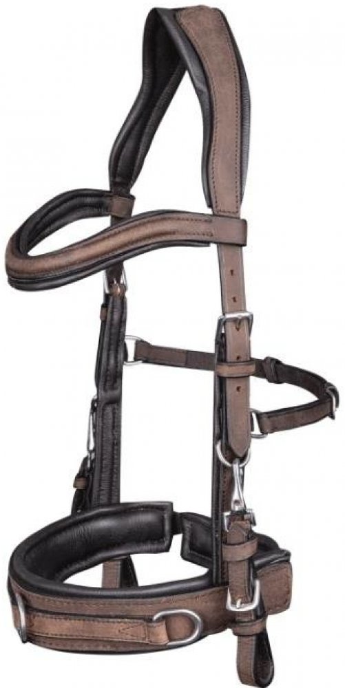 Kožený lonžovací obnosek, který díky anatomickému tvaru poskytuje dostatečný prostor v oblasti zátylku a lícních kostí. Jemně vypodložený. S nerezovými přezkami. Může být použit s udidlem nebo bez.